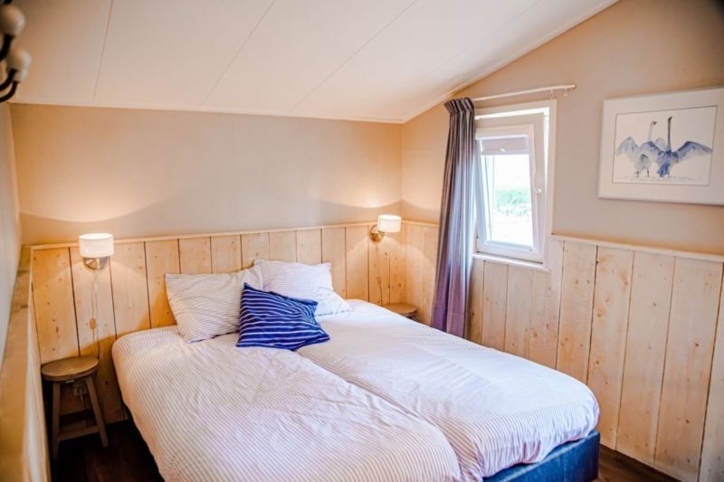 Een knus ingericht huisje voor 4 personen, met eigen entree, terras en badkamer. En met uitzicht op de speelweide en dierenweide! Ideaal voor gezinnen of koppels die wat meer privacy willen. Voorzien van een keuken, koelkast, twee tweepersoonsbedden en een zithoek met tv. Compact, maar van alle gemakken voorzien.